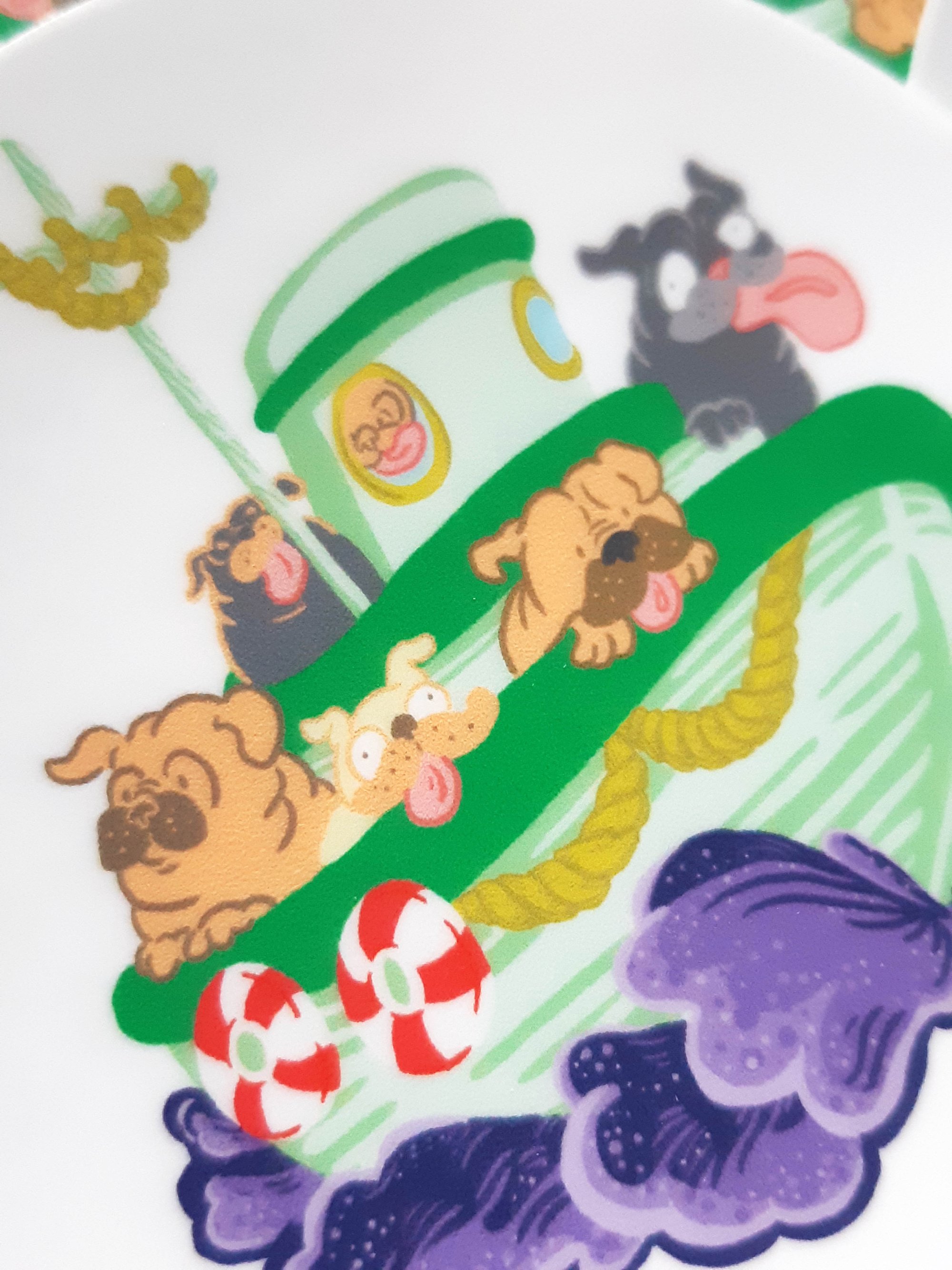 All aboard for the sillies! Possibly my magnum opus, this silly sticker features a pile of pugs dogs aboard a tugboat. These jokes write themselves, people! Printed on matte sticker paper, perfect to put on laptops, notebooks or water bottles.